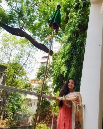 चला हवा येऊ द्या फेम श्रेया बुगडे हिने गुढी उभारून साजरा केला गुढीपाडवा. फोटोमध्ये गुढीसोबत ती व तिचा नवरा निखिल सेठ