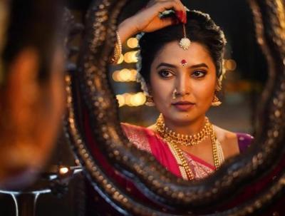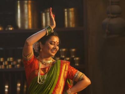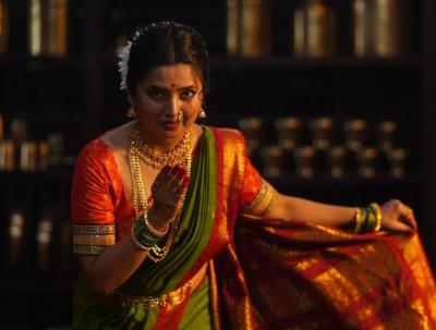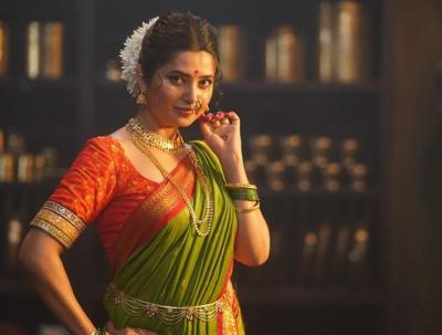 पोपटी रंगाची साडी, नाकात फुलवंती नथ तसेच केसात गजरा माळून तिने साजशृंगार केला आहे.