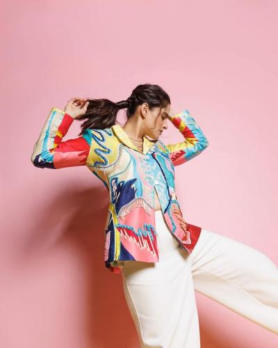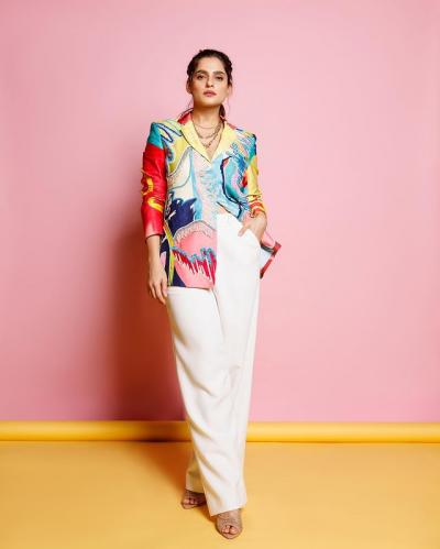 कलरफुल ब्लेझर आणि पांढऱ्या रंगाची पॅन्ट असा हटके लूक तिने केला आहे.