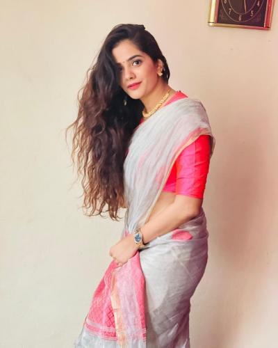 या फोटोत भाग्यश्रीने साडी नेसली आहे आणि मराठमोळ्या साजमध्ये दिसते आहे.