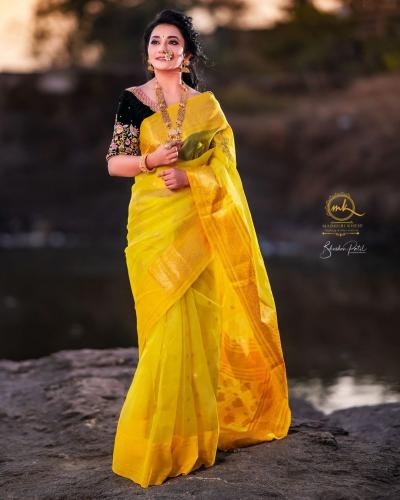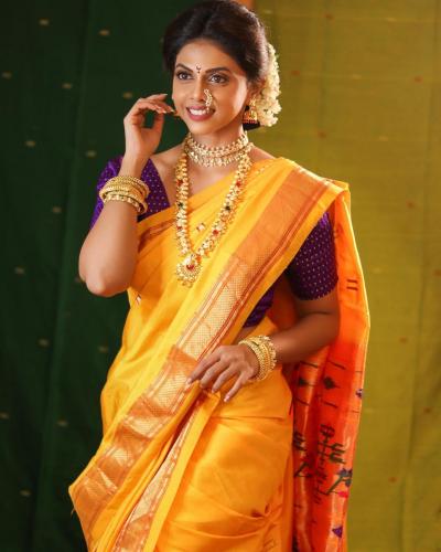 अस्मिता देशमुख हिने पिवळ्या रंगाच्या साडीत क्लासी फोटोशूट केलं आहे. (फोटो -इन्स्टाग्राम)