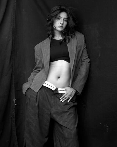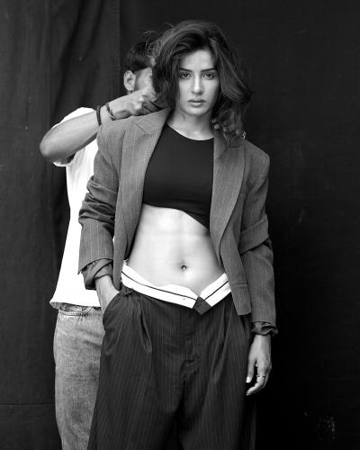 नेहा खान हिने ब्लॅक अँड व्हाइट फोटोशूट केलंय. यात तिने ब्लॅक क्रॉप टॉप, त्यावर ब्लेझर आणि लाँग पँट परिधान केलीय.