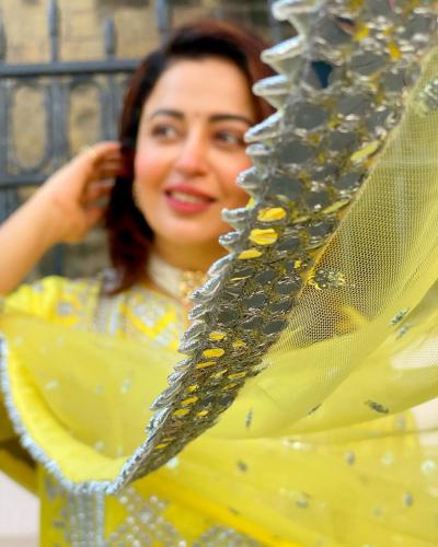 नेहा पेंडसेच्या पिवळ्या रंगाच्या एथनिक ड्रेसमधील फोटो शेअर केले आहेत.