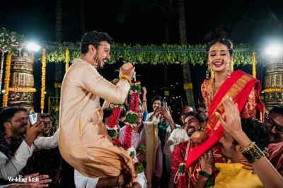 लग्न म्हटल्यानंतर मज्जा येणारच. वरमालेसाठी विराजस व शिवानीला पाहुण्यांनी वर उचलून घेतलं, तो क्षण कॅमेºयात नेमका टिपला गेला आहे.