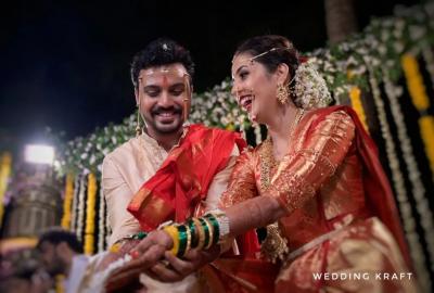 विराजस व शिवानी यांनी आपल्या लग्नात दाक्षिणात्य पेहराव केला होता. शिवानीने सुंदर कांजीवरम साडी नेसली होती. या साडीत ती कमालीची सुंदर दिसत होती.