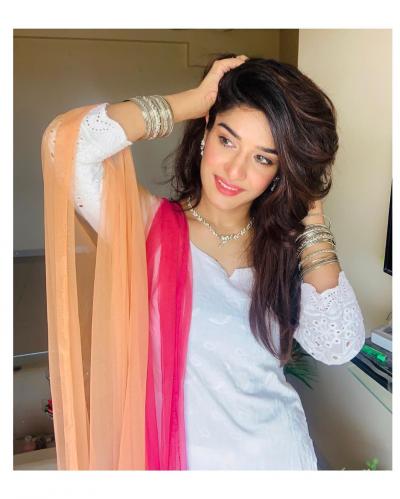लखनवी सफेद रंगाच्या ड्रेसवर कलरफुल ओढणीच्या गेटअपमध्ये नेहा खुपच छान दिसते आहे.