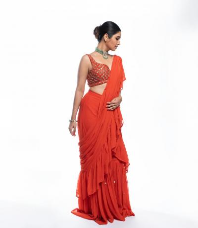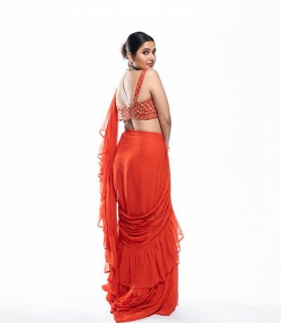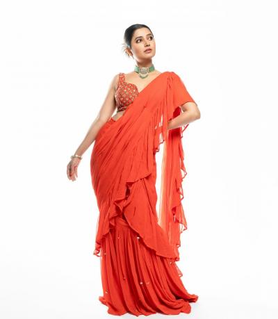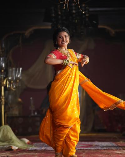 प्राजक्ता माळी नारंगी साडीत खूपच ग्लॅमरस दिसते आहे. तिच्या या फोटोंना चाहत्यांची पसंती मिळताना दिसते आहे.