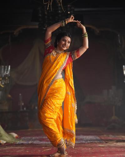 माझी देखणी सुरत, न्हाई हटत कुणाच्या नजरा..! 'फुलवंती'च्या नारंगी साडीत ग्लॅमरस अदा