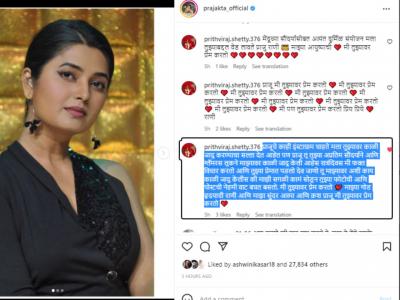 प्राजक्ता माळीच्या फोटोवर एका चाहत्याने प्राजू, मी तुझ्यावर प्रेम करतो असे म्हणत जाहीरपणे प्रेमाची कबुली दिली आहे.
