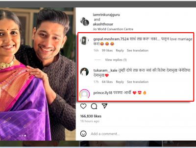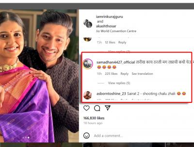 एकाने कमेंट करत "तारीख काय ठरली मग लग्नाची? कधी येऊ मी?" असं म्हटलं आहे. तर दुसऱ्याने "सैराट २ शूटिंग चालू झालं",अशी कमेंट केली आहे.