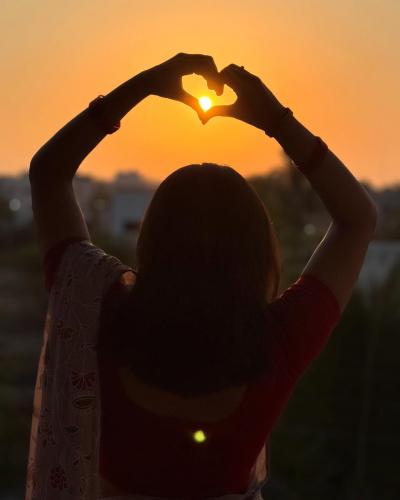 आज प्रेमाचा दिवस असल्याने रिंकूने खास फोटोही शेअर केला आहे. पाठमोरी उभी राहत सूर्याकडे हात उंचावत तिने हार्ट बनवलं आहे.