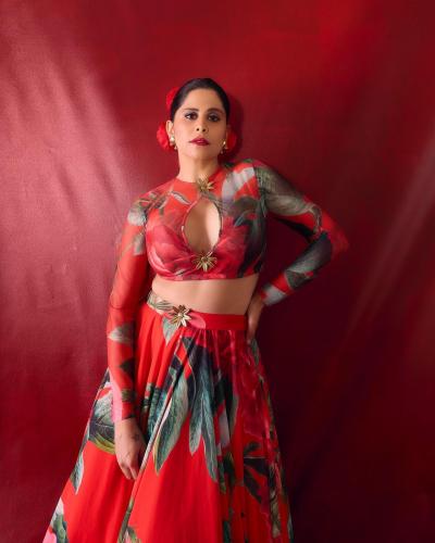 सई ताम्हणकर हिने नुकतेच सोशल मीडियावर काही फोटो शेअर केले आहेत. यात तिने लाल रंगाचा फ्लोरल लेहंगा परिधान केला आहे.