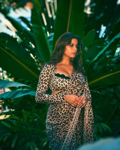 या फोटोंमध्ये सईने बिबट्या स्टाइल केल्याचं दिसत आहे. बिबट्या प्रिंट असलेली साडी तिने नेसली आहे.