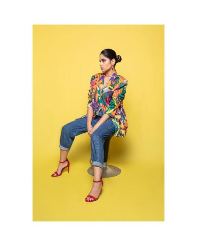 सई ताम्हणकरने नुकतेच शेअर केलेल्या फोटोत तिने मल्टी कलरचे जॅकेट आणि डेनिम घातली आहे.
