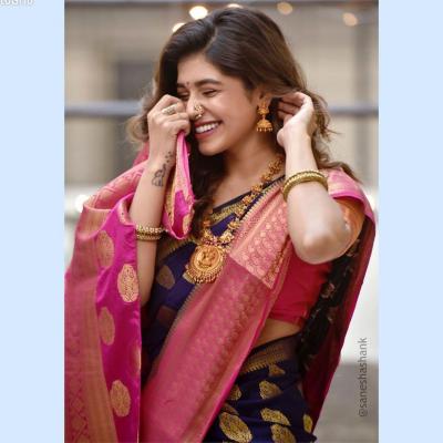 या फोटोत तिने साडी परिधान केली असून नाकात नथ, कपाळावर टीकली, असा साजश्रृंगार केलेला पाहायला मिळत आहे.