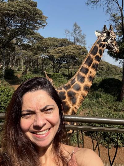 तिने इन्स्टाग्रामवर शेअर केलेल्या फोटोमध्ये तिच्या चेहऱ्यावर आनंद आणि हसू स्पष्ट दिसत आहे, तर जिराफ मात्र सेल्फीसाठी तयार नसलेला दिसतोय.