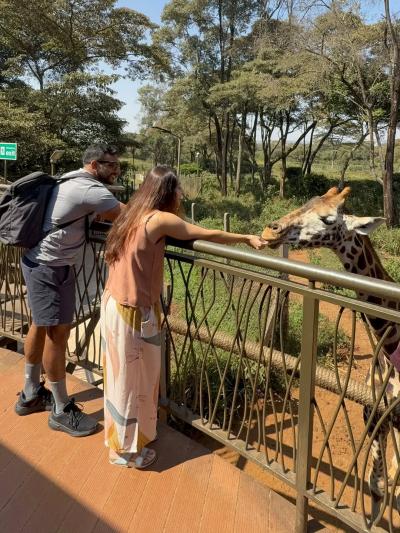 सोनाली आणि तिचा पती कुणाल हे नैरोबी, केनिया येथील 'जिराफ सेंटर'मध्ये फिरायला गेले आहेत.