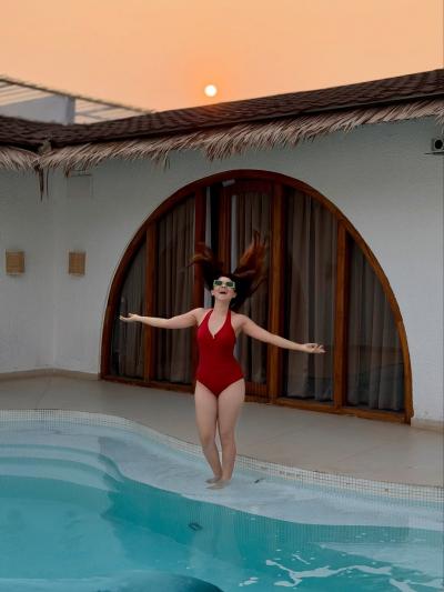 या फोटोंमध्ये सोनाली लाल रंगाच्या स्टायलिश मोनोकिनीमध्ये सुंदर दिसतेय.