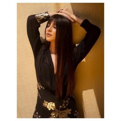 तेजस्विनी पंडितने या फोटोत ब्लॅक रंगाची ब्रालेट परिधान केली आहे.