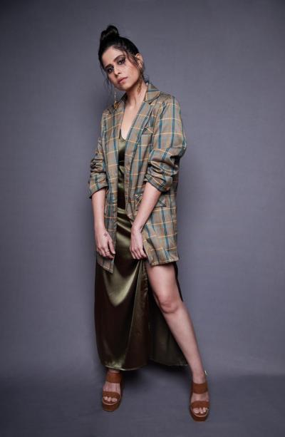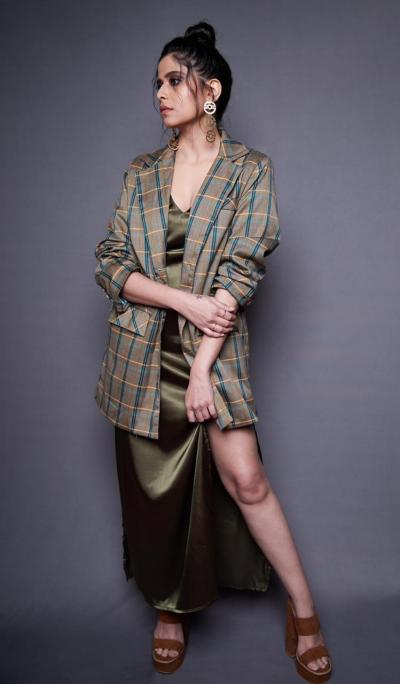 या फोटोशूटमध्ये सईने ऑलिव्ह कलरचे वनपीस आणि त्यावर त्याच रंगामध्ये चेक्सचे ब्लेझर परिधान केले आहे.