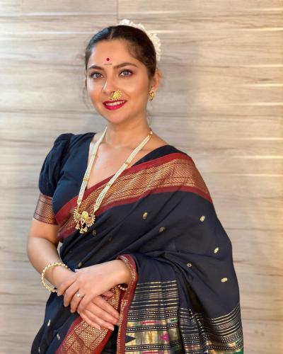 सोनाली कुलकर्णीची साडीतील फोटो शेअर केले आहेत.
