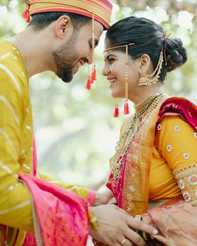 प्रसाद आणि अमृताने लग्नासाठी खास पांरपरिक लूक केला होता. गुलाबी रंगाच्या साडीत अमृताचं सौंदर्य खुलून आलं होतं. तर धोतर, सदरा आणि टोपी असा मराठमोळा लूक प्रसादने केला होता.