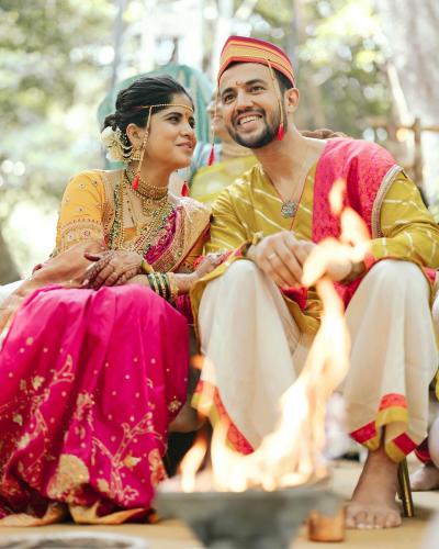 नुकतंच अमृताने लग्नातील आणखी काही फोटो शेअर केले आहेत. हे नवविवाहित जोडपं खूपच खास दिसत आहे. तसंच अमृताने फोटोंना छान कॅप्शन दिलं आहे.