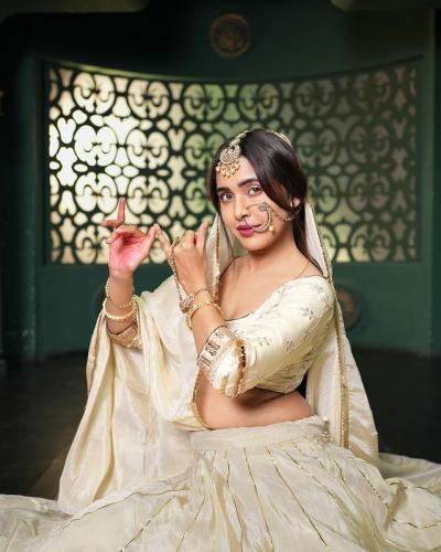 नुकतेच अभिनेत्रीने सोशल मीडियावर पांढऱ्या रंगाची घागरा चोळी परिधान करून सुंदर असे फोटो शेअर केलेत.