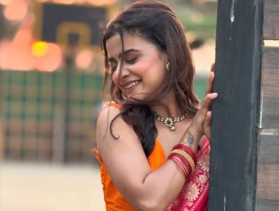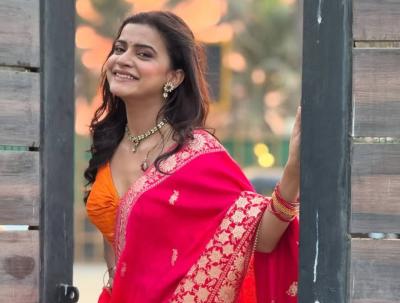 गुलाबी रंगाच्या साडीत अभिनेत्रीचं सौंदर्य आणखी खुलून आलं आहे.