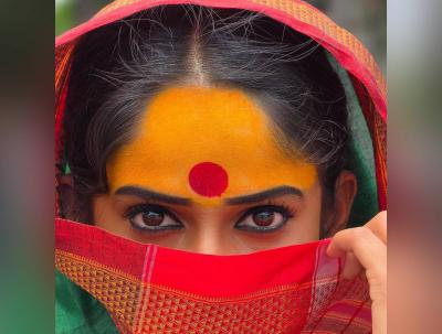 कपाळावर मळवट अन् ठसठशीत कुंकू तसेच नऊवारी साडी नेसून तिने लूक पूर्ण केला आहे.