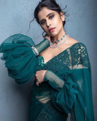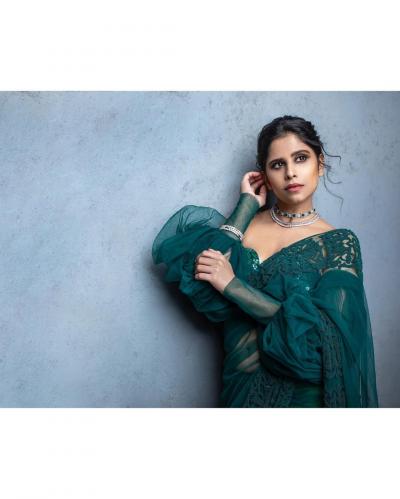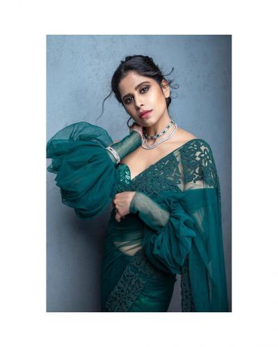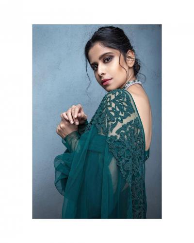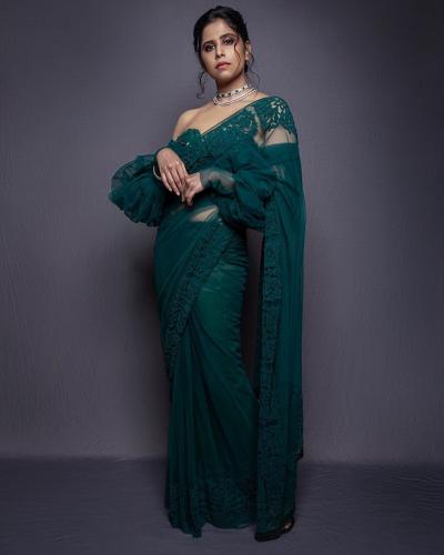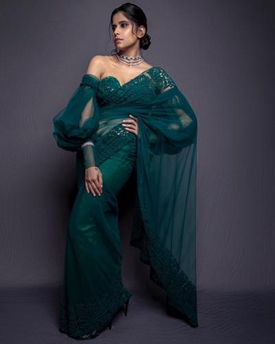 सईने बॉटल ग्रीन रंगाच्या साडीमध्ये नुकतेच फोटोशूट केले आहे.