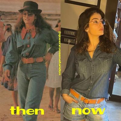 या फोटोंमध्ये रवीना डेनिम लूकमध्ये दिसतेय.