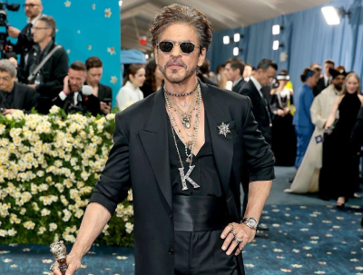 यावेळी शाहरुख हा सब्यसाची मुखर्जी यांनी डिझाइन केलेल्या लाँग लेंग्थ फ्लोअर कोटमध्ये दिसला. यासोबत गळ्यात K चं लॉकेट, गोल्डन ज्वेलरी, काळा गॉगल आणि हातात काळी छडी अशा लूकमध्ये शाहरुख खानने मेट गालाच्या रेड कार्पेटवर एन्ट्री घेतली. या लूकमध्ये तो डॅशिंग आणि एकदम स्टायलिश (Shah Rukh Khan In Met Gala 2025) दिसत होता.