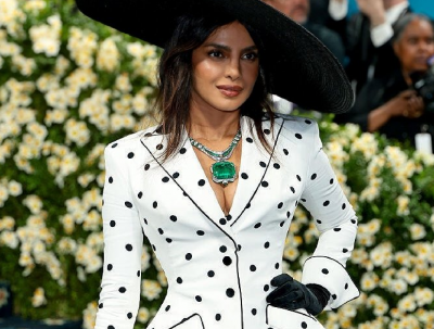 तर प्रियंका ही पोलका ड्रेसमध्ये (Priyanka Chopra In Met Gala 2025) दिसली. हा लूक मेट गाला २०२५ च्या थीम "सुपरफाईन: टेलरिंग ब्लॅक स्टाईल" आणि ड्रेस कोड "टेलर्ड फॉर यू" शी अगदी जुळत होता. तिने हा लूक एका मोठ्या काळ्या टोपीने आणि बुल्गारीच्या एका आकर्षक दागिन्यांच्या सेटने पूर्ण केला.