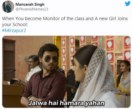 1 / 11'मिर्झापूर २' सीझन रिलीजसोबत मीम्सची दुनियाही गुलजार झाली. बऱ्याच दिवसांपासून 'मीमसेने'चे खेळाडू पहिल्या सीझनच्या डॉयलॉग्सवर काम चालवत होते. पण सीझन २ रिलीज होताच पुन्हा एकदा इंटरनेटवर मीम गॅगने धमाका केला आहे. यावेळी तर सीझनमध्ये काही नवीनही चेहरे आहेत आणि डायलॉग्सही अधिक दमदार आहेत. अशात मीम्स व्हायरल झाले नसते तर नवल.2 / 113 / 114 / 115 / 116 / 117 / 118 / 119 / 1110 / 1111 / 11