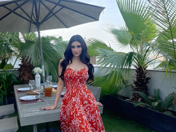 Mouni Roy Pictures : दुबईतल्या घरात मौनी रॉयनं रेड प्रिंटेड ड्रेसमध्ये केलं फोटोशूट, दिसली खूपच ग्लॅमरस