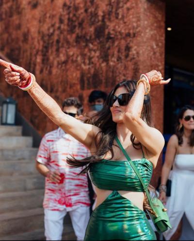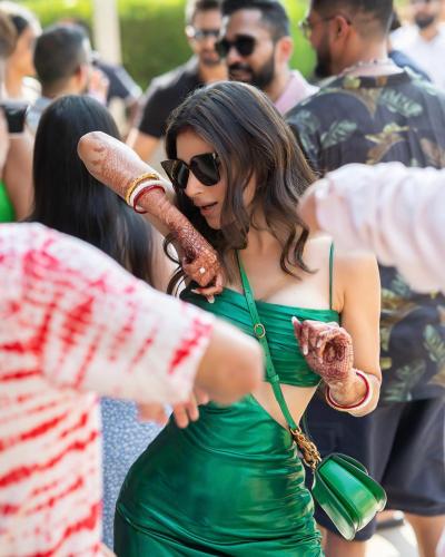 या फोटोंमध्ये मौनी ग्रीनच्या रिव्हिलिंग ड्रेसमध्ये मौनी रॉय मस्ती करताना दिसत आहे. (फोटो: इंस्टाग्राम)