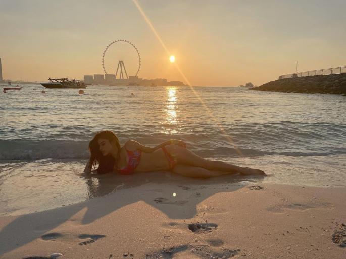 PHOTOS: रेड बिकिनी घालून समुद्र किनारी एन्जॉय करताना दिसली मौनी रॉय, पाहा तिचे हॉट फोटो !
