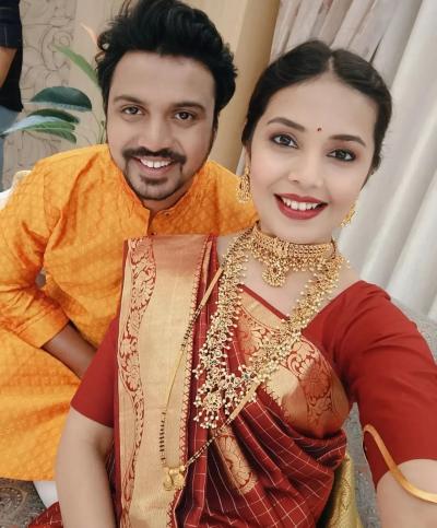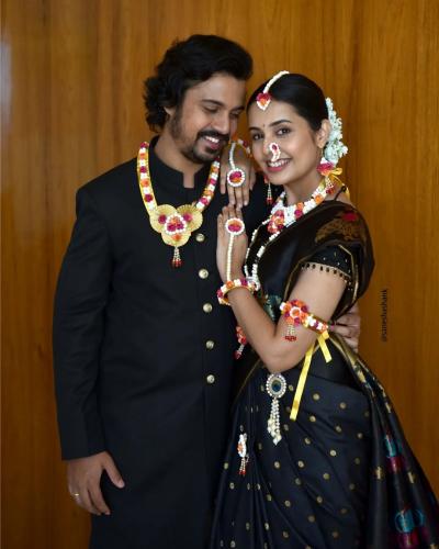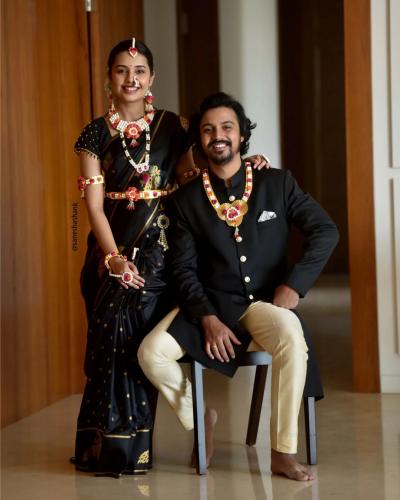 तर विराजसने काळा कोट परिधान केला आहे. त्यानेही गळ्यात हलव्याचा हार घातला आहे. दोघांचे फोटो सोशल मीडियावर पसंत केले जात आहेत.
