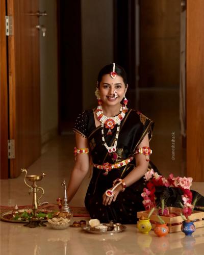 लग्नानंतर दोघांची ही पहिलीचच संक्रांत आहे. शिवानीचा मकर संक्रांती लुक सध्या व्हायरल होतोय. काळ्या साडीत शिवानी खूपच सुंदर दिसत आहे.