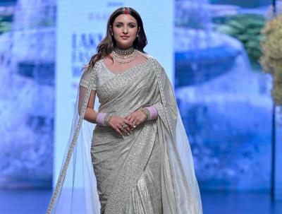 अभिनेत्री परिणीती चोप्राने राखाडी रंगाच्या साडीत रँप वॉक केलं. परिणीतीचा अमर सिंह चमकीला सिनेमा खूप गाजला