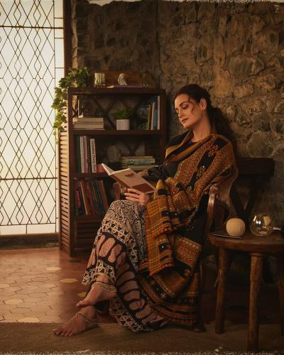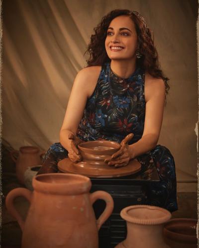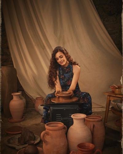 एका फोटोमध्ये अभिनेत्रीने हॅडलूम सिल्क साडी नेसली आहे तर काही फोटोंमध्ये ती कुंभाराप्रमाणे हाताने मातीचे मडके घडवताना दिसते आहे.
