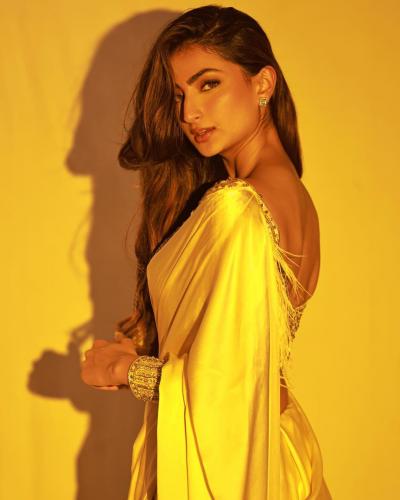 पलकने यलो कलरच्या साडीसोबत फुल स्लीव्ह बॅकलेस ब्लाउज मॅच केला आहे. (फोटो: इंस्टाग्राम)