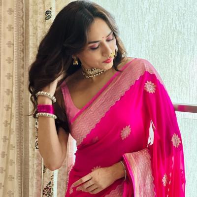 PHOTOS: गुलाबी साडी, नाकात नथ… चंद्राच्या साडीतल्या अदांवर नेटकरी झाले फिदा !