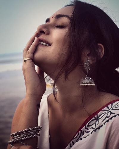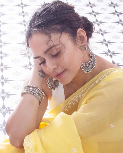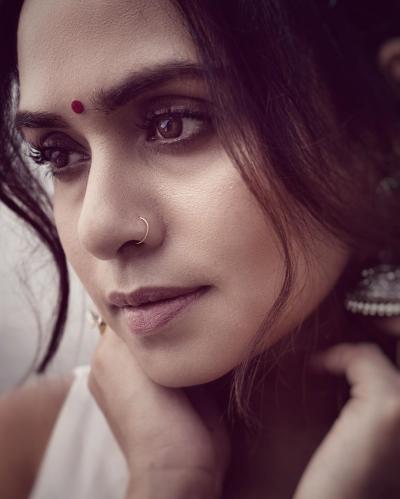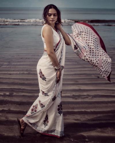 नुकतेच अमृता खानविलकरने पांढऱ्या रंगाच्या साडीतील फोटो सोशल मीडियावर शेअर केले आहेत.