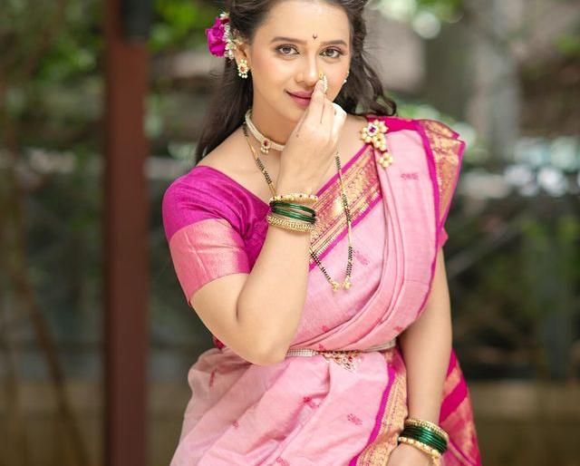 1 / 7मधुरा जोशी ही छोट्या पडद्यावरील लोकप्रिय अभिनेत्री आहे.2 / 7'फुलाला सुगंध मातीचा' मालिकेत तिने साकारलेलं 'इमली' नावाचं पात्र चाहत्यांना प्रचंड आवडलं.3 / 7अभिनयाव्यतिरिक्त मधुराचा कपड्यांचा व्यवसाय आहे. 4 / 7नुकतंच अभिनेत्रीने स्वत: च्या कपड्यांच्या ब्रॅंडसाडी नऊवारी साडी नेसून हे फोटोशूट केलं आहे. 5 / 7मधुरासह पती गुरु दिवेकरनेही तिला साथ देत फोटो क्लिक केले आहेत.6 / 7फोटोंमध्ये फिकट गुलाबी रंगाची नऊवारी साडी त्यावर साजेसे मोत्यांचे दागिने असा पेहराव तिने केला आहे. तर गुरु दिवेकरने सोनेरी रंगाचा कुर्ता परिधान केलाय. 7 / 7अभिनेत्रीचे व्हायरल फोटो नेटकऱ्यांच्या पसंतीस उतरले आहेत. फोटोमधील पारंपरिक लूकमध्ये अभिनेत्रीचं सौंदर्य खुलून आलं आहे.