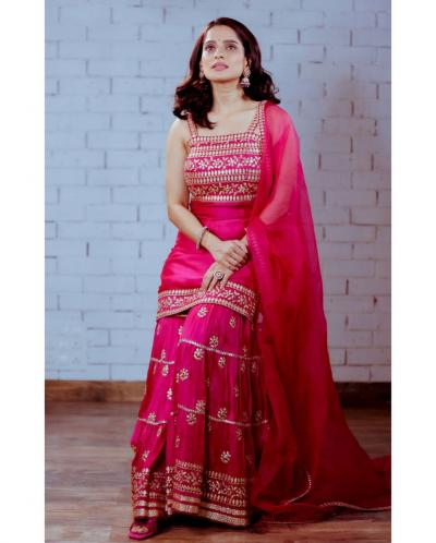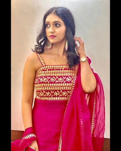 यामध्ये ती गुलाबी रंगाच्या सुंदर शरारा ड्रेसमध्ये दिसून येत आहे. या ड्रेसमध्ये तिचं रूप आणखीनच खुललं आहे.