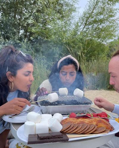 या फोटोत प्रियंका चोप्रा एका छत्रीखाली फ्रेंड्ससोबत बार्बेक्यू करताना दिसत आहे.