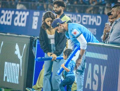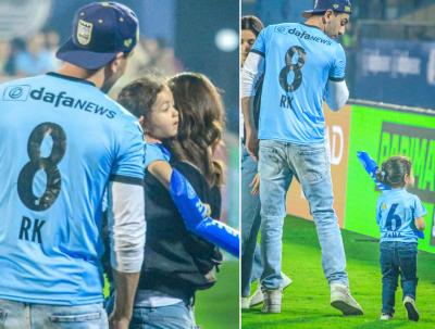 राहाला पाहताच क्षणी सर्वचजण आलियाचा लेकीवर फिदा झाले. या सामन्यात ती आकर्षणाचेा केंद्र बनली होती. आपल्या वडिलांसारखी निळ्या रंगाची जर्सी घातलेली राहा खूप क्यूट दिसत होती.