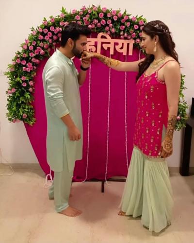 राहुल वैद्य आणि दिशा परमार यांच्या लग्नापूर्वीच्या कार्यक्रमांना जोरदार सुरूवात झाली आहे. दिशाच्या मेहंदी सोहळ्याचे फोटो सोशल मीडियावर व्हायरल झाले आहेत.